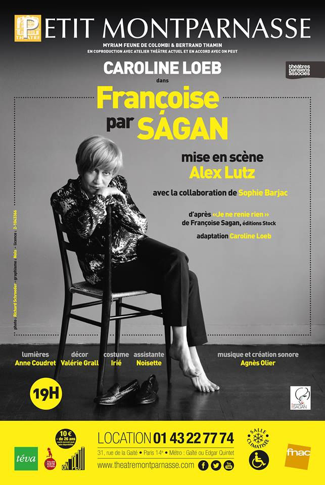 La comédienne adaptatrice est d'un talent remarquable et particulièrement douée pour faire renaître des femmes de génie à la scène avec la fine complicité ici encore d'Alex Lutz . Après la réussite de sa mise en scène pour le monologue passionnant "George Sand, ma vie, son oeuvre" jouée entre 2013 et 2016, ce dernier réitère sa collaboration avec Caroline Loeb avec "Françoise par Sagan" qui s'est installé en septembre 2017 au Petit Théâtre Montparnasse à la demande de Myriam Feune de Colombi. Ce lieu mythique né au XIXe s est un véritable vivier de pièces à succès nommées aux Molières ou couronnées de ce prix notamment l'an dernier avec le Molière du meilleur spectacle seule en scène "Les Chatouilles" d'André Bescond et un Molière d'Honneur est attribué aussi à Fabrice Luchini pour "Poésie ? " actuellement à l'affiche au Th Montparnasse . Depuis septembre 2017, le spectacle "Françoise par Sagan" reçoit dés ses premières représentations un très bel accueil du public et un retour fort élogieux de la presse . De fait, la pièce part en tournée dés janvier 2017 et elle sera rejouée au Off du Festival d'Avignon cet été.
